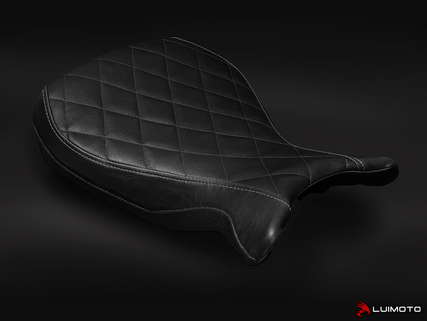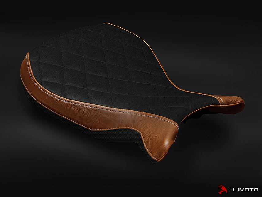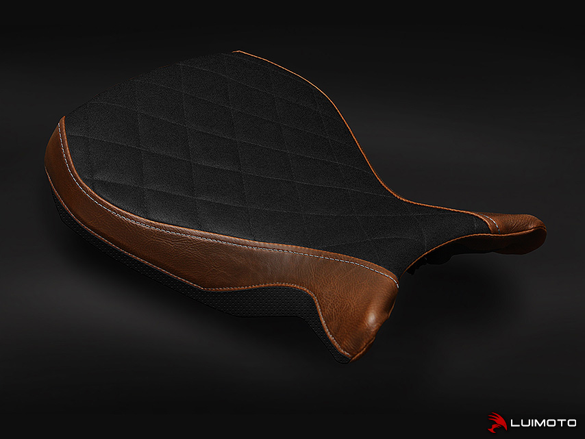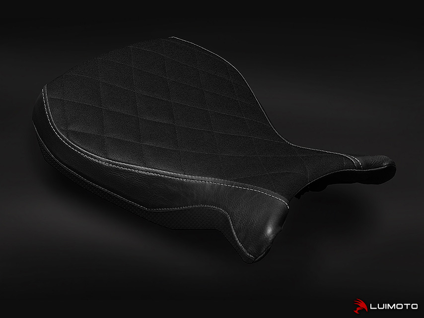 The BMW R nineT is a motorcycle with a pure, classic, yet modern look. We designed our seat cover to help elevate it’s style to the next level. The Luimoto R nineT seat cover features our vintage vinyl Diamond Edition with unique modern lines, silver stitching to highlight key panels, and perforated black lower panel to add muscle to the entire look. Synthetic suede riding surface also available! Stand out with the finishing touch of Luimoto!
