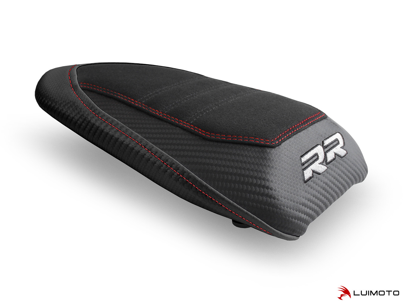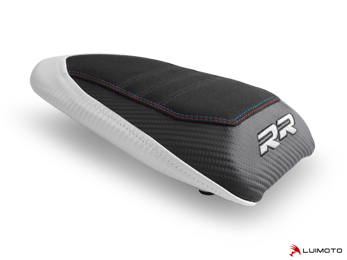 Introducing the Motorsports Designer Passenger Seat Cover for your BMW S1000RR! Featuring a luxurious synthetic suede riding surface quilted with our famous race ribbing design. This allows superior passenger stability during hard braking and acceleration. Sleek lines, contrast stitching, and a RR logo embroidery provides the finishing touch. Ride in Style with Luimoto!