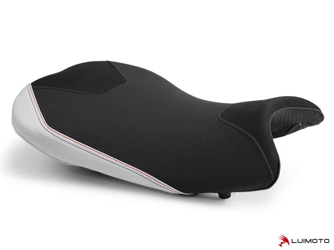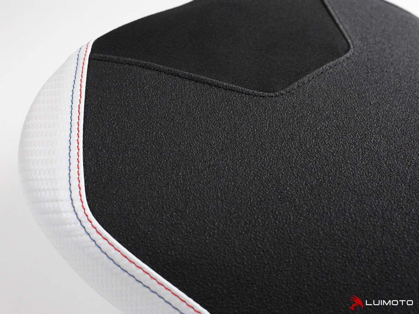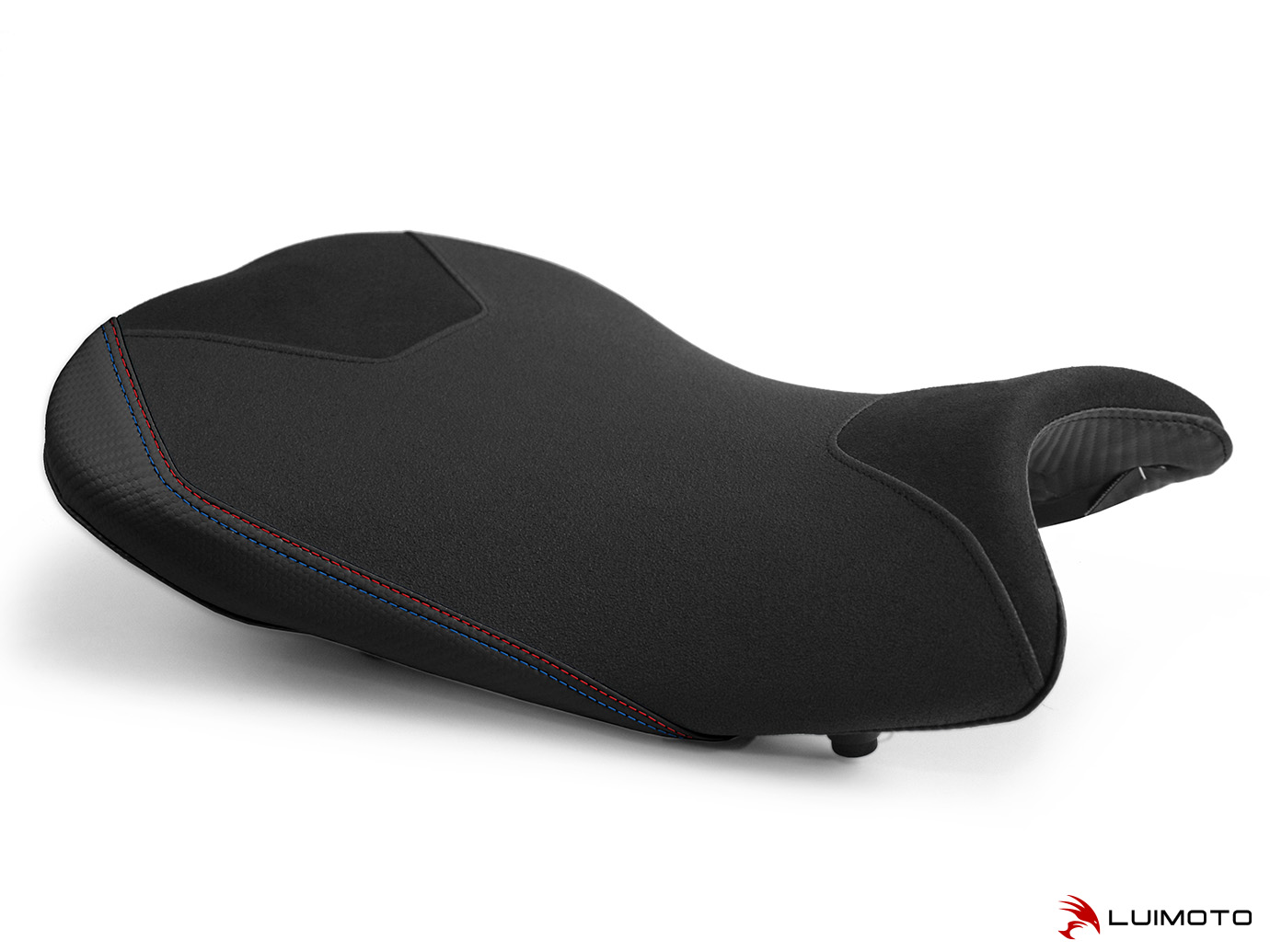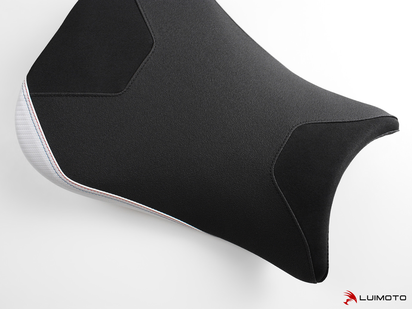 Introducing the functional and stylish Sport Seat Cover for your BMW S1000RR! Featuring a Tec-grip riding surface with stylish synthetic suede front and rear panels. This allows superior rider stability during hard braking, acceleration, and attacking your favorite corners. The Carbon fiber look marine-grade vinyl side panel is contrast stitched with M-sport colours setting you apart from the crowd. Ride in Style with Luimoto!