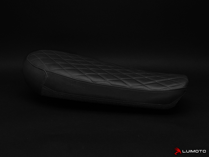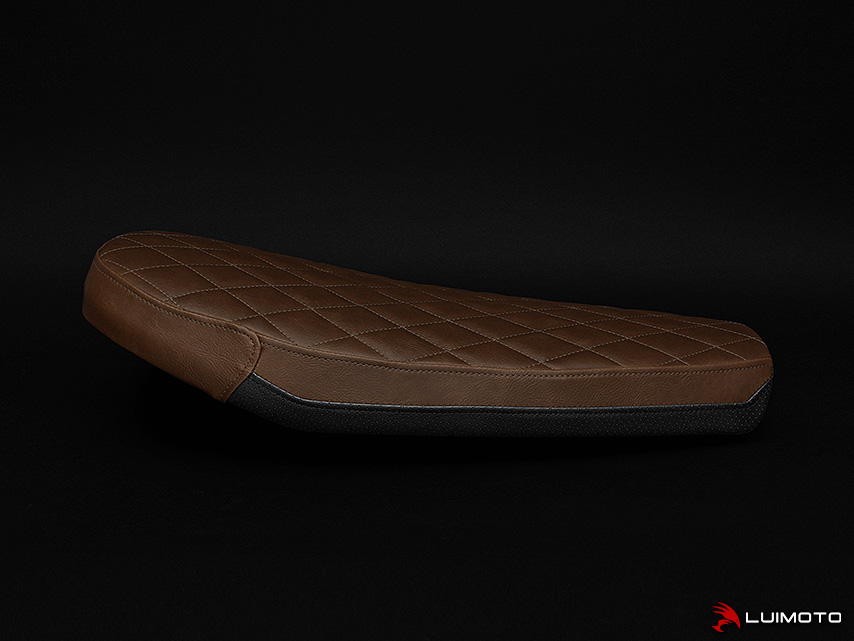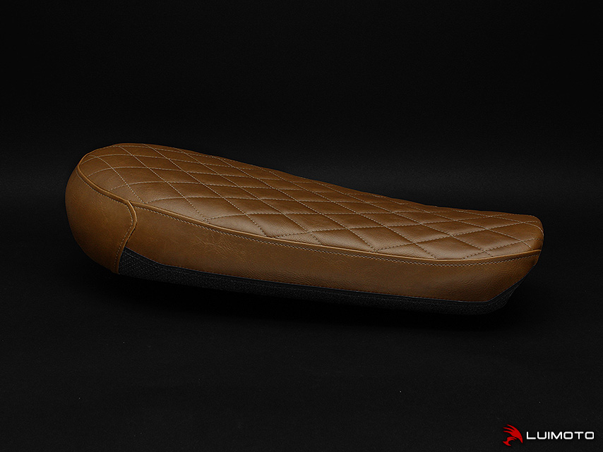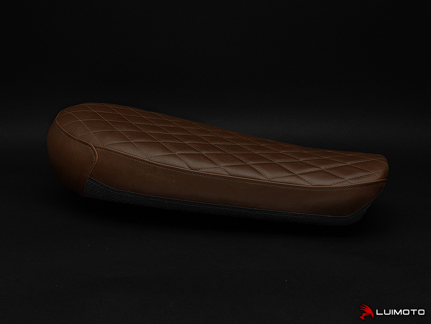Introducing the Moto Guzzi Bobber Vintage Diamond seat cover. It is made with a vintage style fabric available in brown, dark brown, and black. This leather look material features signs of distress, and is stitched with a diamond pattern. All of these elements come together to complete a refined rugged appeal. Stand out with the finishing touch of Luimoto!